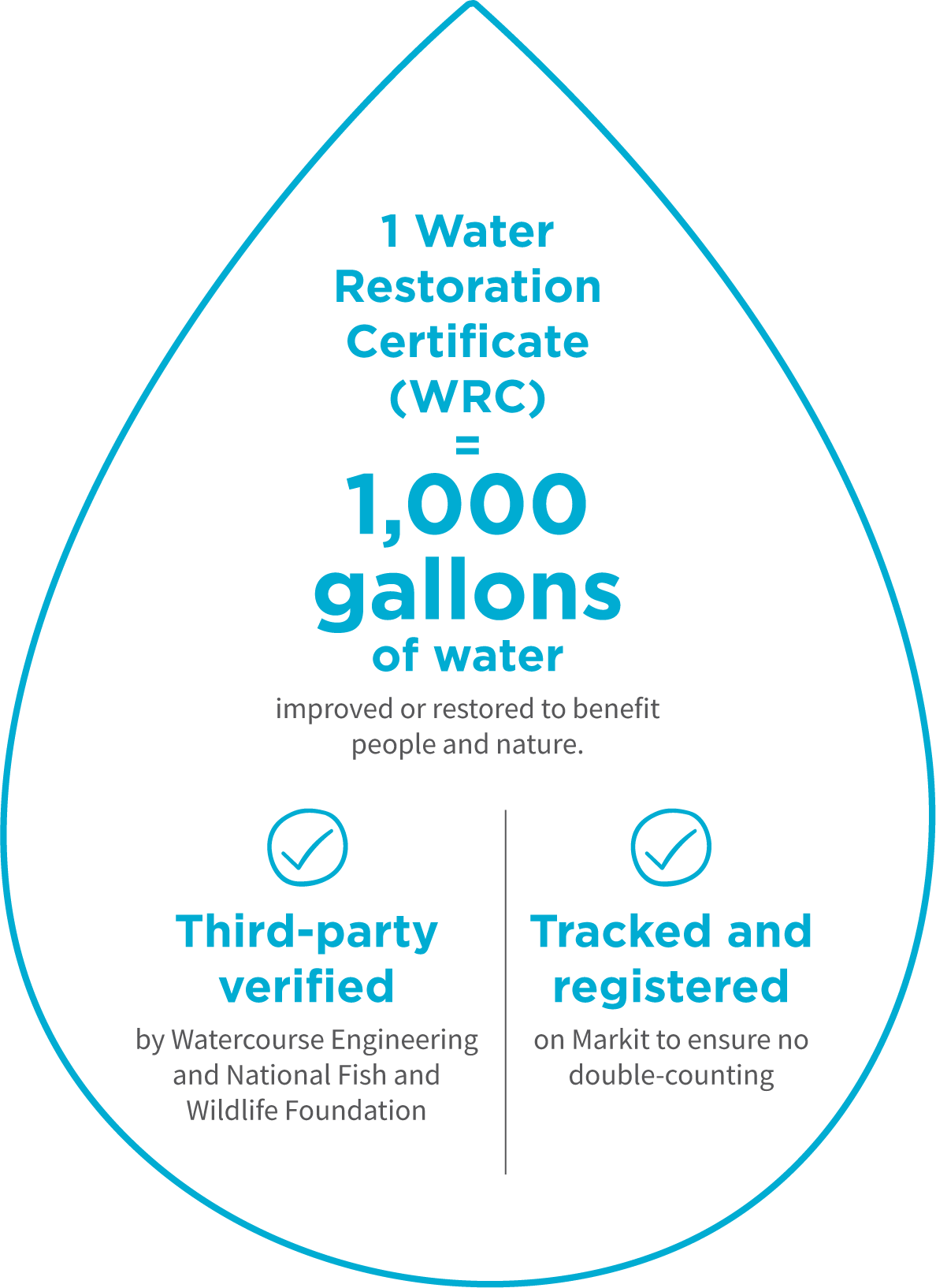 Each water credit directly translates to 1,000 gallons of natural freshwater improved or restored over an 18-month cycle.